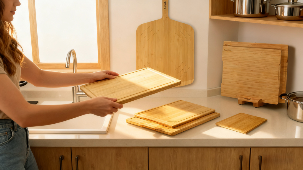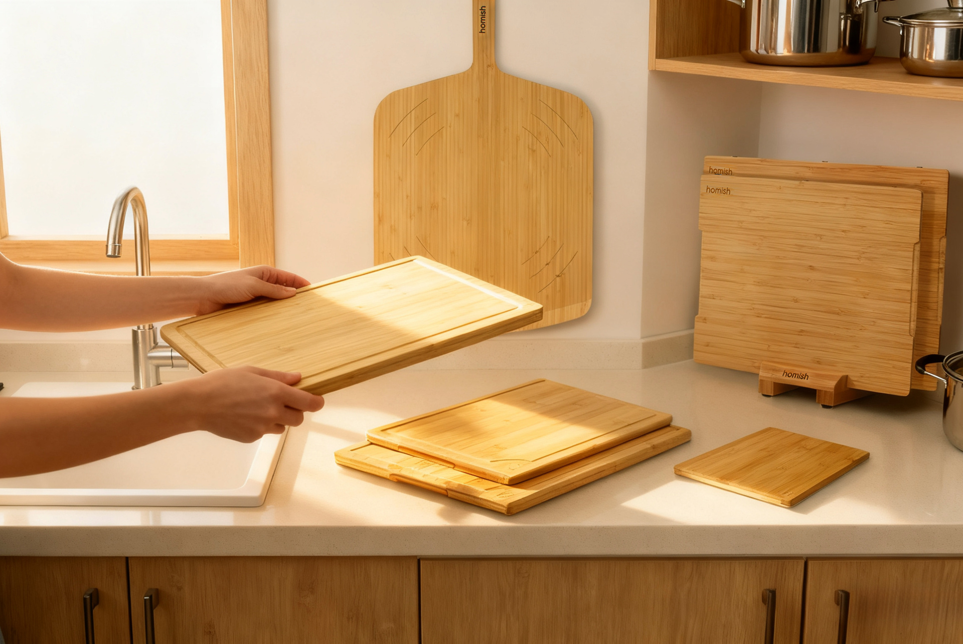 At Homish, we produce beautifully crafted bamboo cutting boards designed for both aesthetics and everyday use. Each item reflects our commitment to sustainable materials and kitchen excellence.